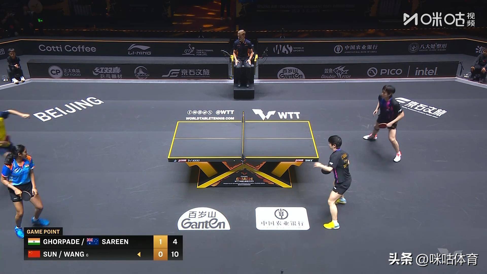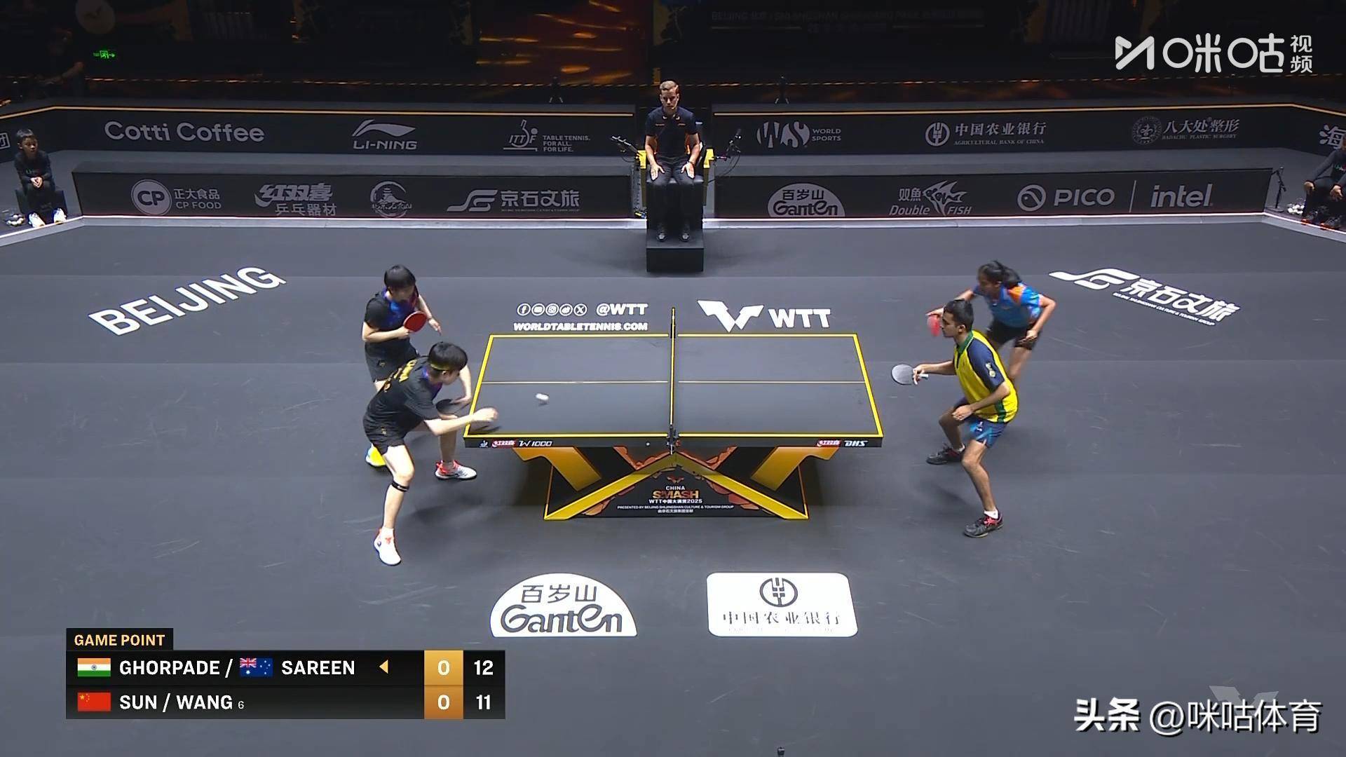 次局“莎头”组合景况渐渐回升。王楚钦反手拧拉接连得分,“莎头”组合普通以11比4扳回一局。